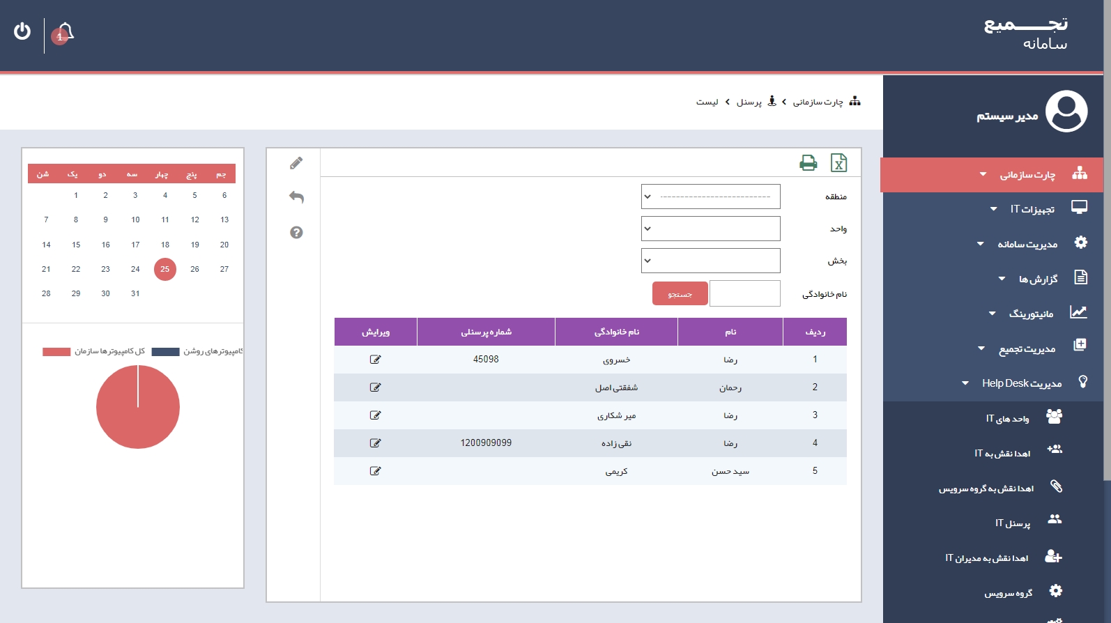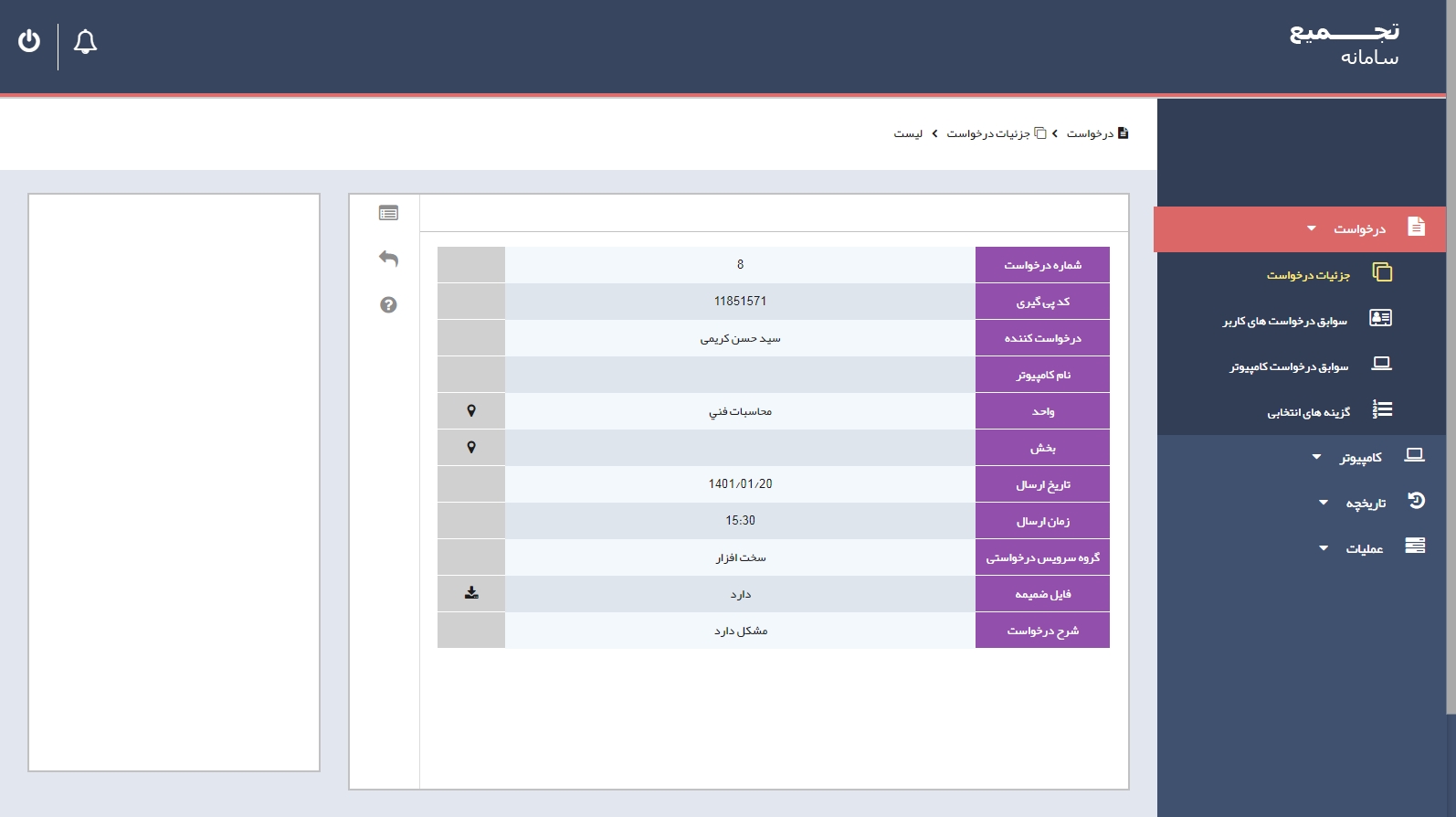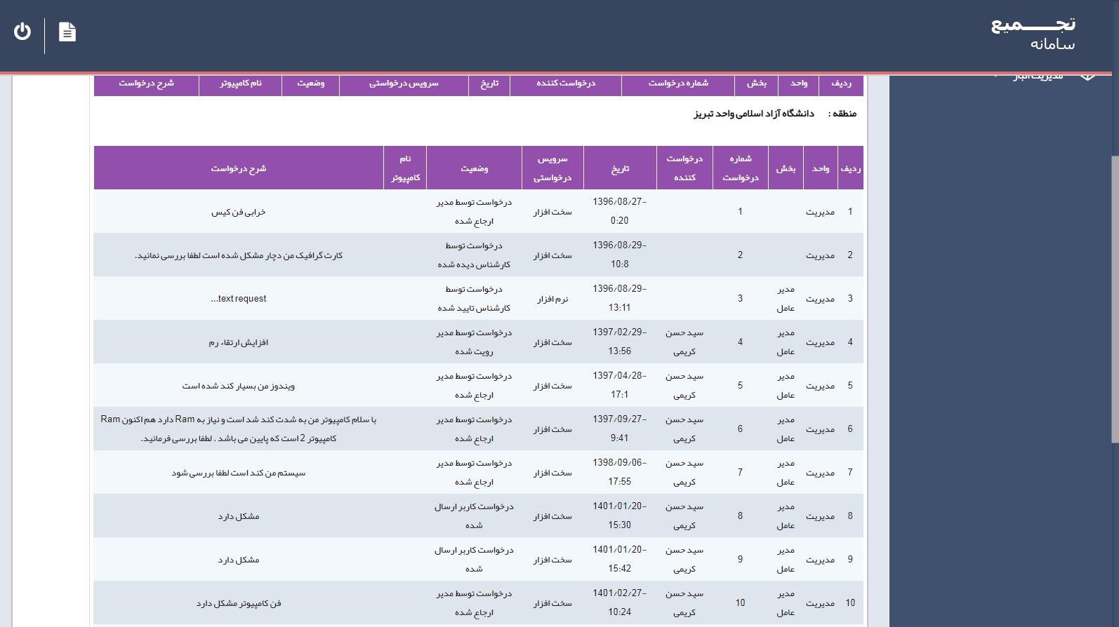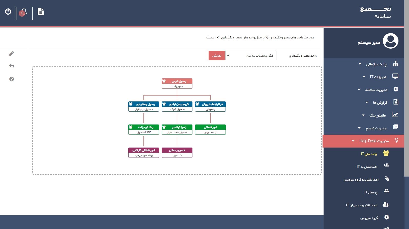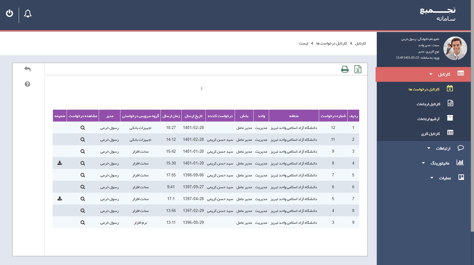 مدیر واحد با بررسی درخواست ها ، آنها را به تکنسین و شرکت های پشتیبان با درج سرویس هایی که باید روی درخواست انجام شود ، ارسال می کند.